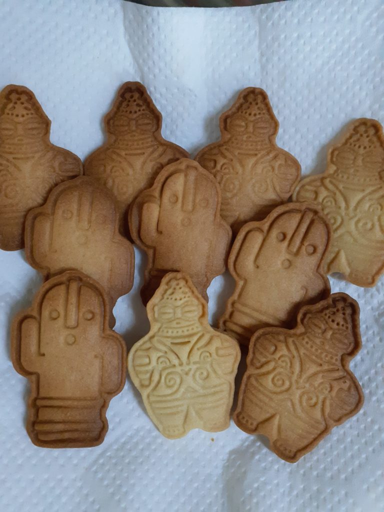 昨日クッキーを焼いてみた。遮光式土器クッキーと埴輪クッキーだ。